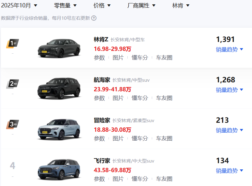 刚刚过去的10月份,长安林肯仅售出3085辆车,其中林肯Z和航海家苦售千余辆,冒险家和飞行家也没突破300的数字,可以说是几乎退出主流市场。
